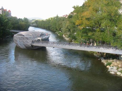 Egy mesterséges sziget Grác folyóján, a Mur-on