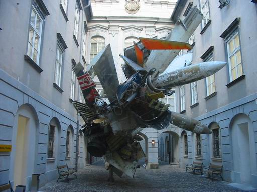 A belváros egy belsõ udvarában álló "repülõgép